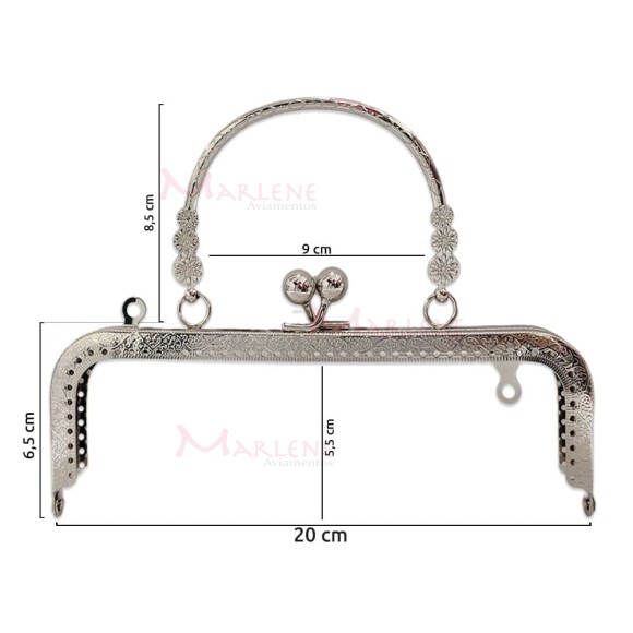 Detalhes: Armação fecho da vovó retangular 20cm com alça e furos HYTS-2