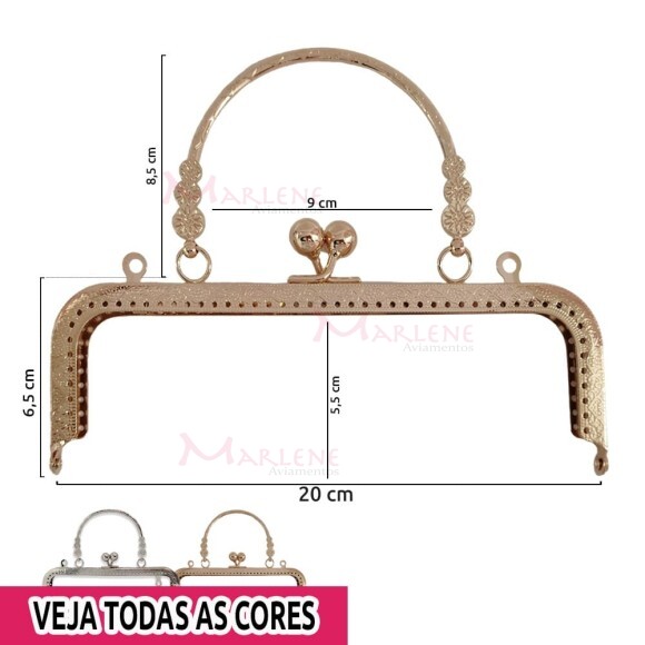 Detalhes: Armação fecho da vovó retangular 20cm com alça e furos HYTS-2