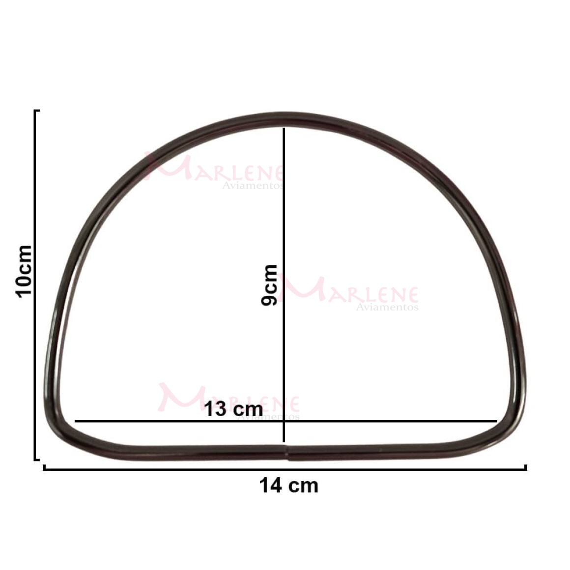 Uso: Alça para bolsa em metal modelo meia argola, utilizada em bolsas de crochê, como alça de mão. Material resistente e elegante para garantir um diferencial para suas bolsa. Alça com abertura para que você encaixe os dois lados na bolsa.