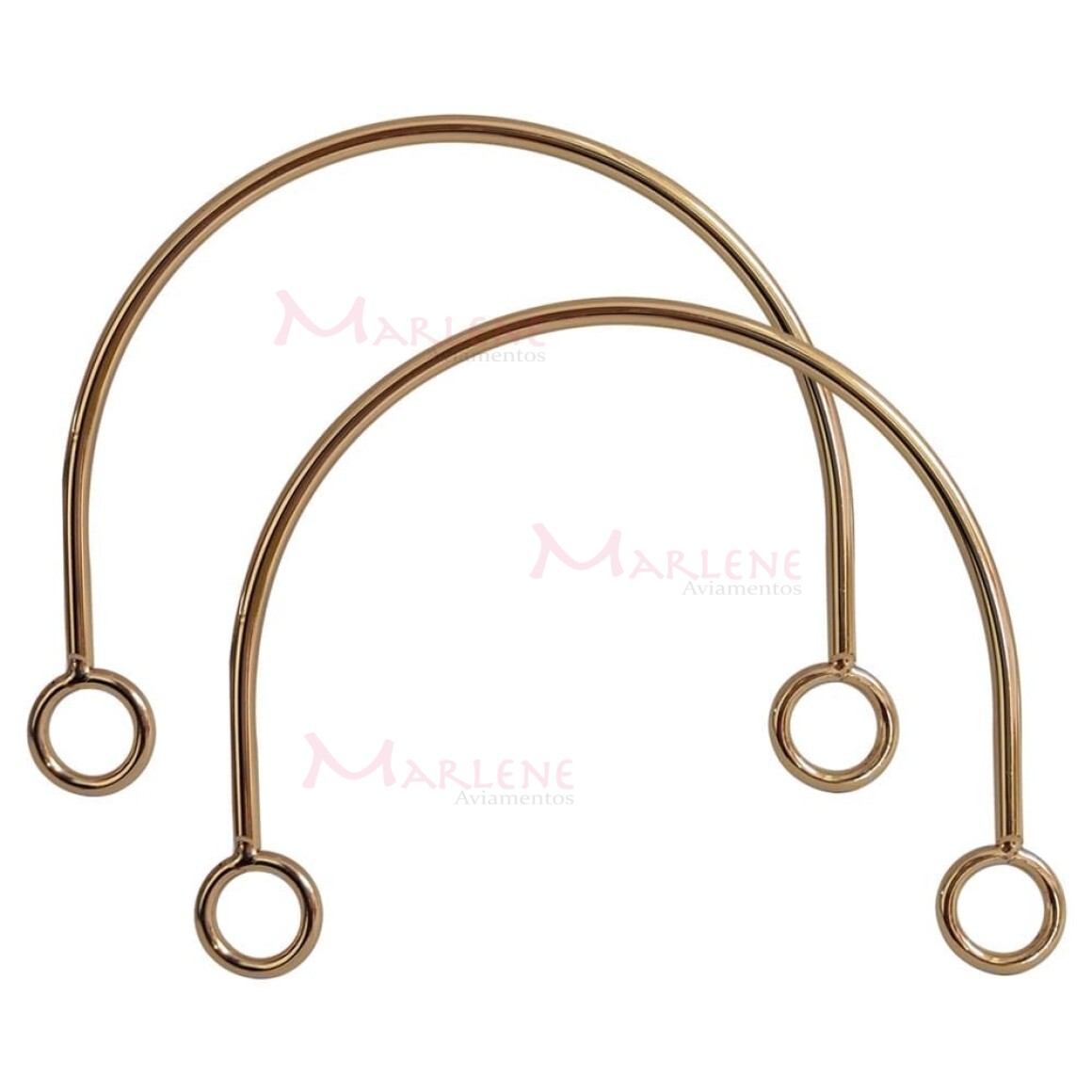 Uso: Alça para bolsa em metal, utilizada em bolsas de crochê, como alça de mão. Material resistente e elegante para garantir um diferencial para suas bolsas.