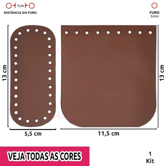 Kit fundo e tampa para bolsa de crochê pequeno em couro sintético