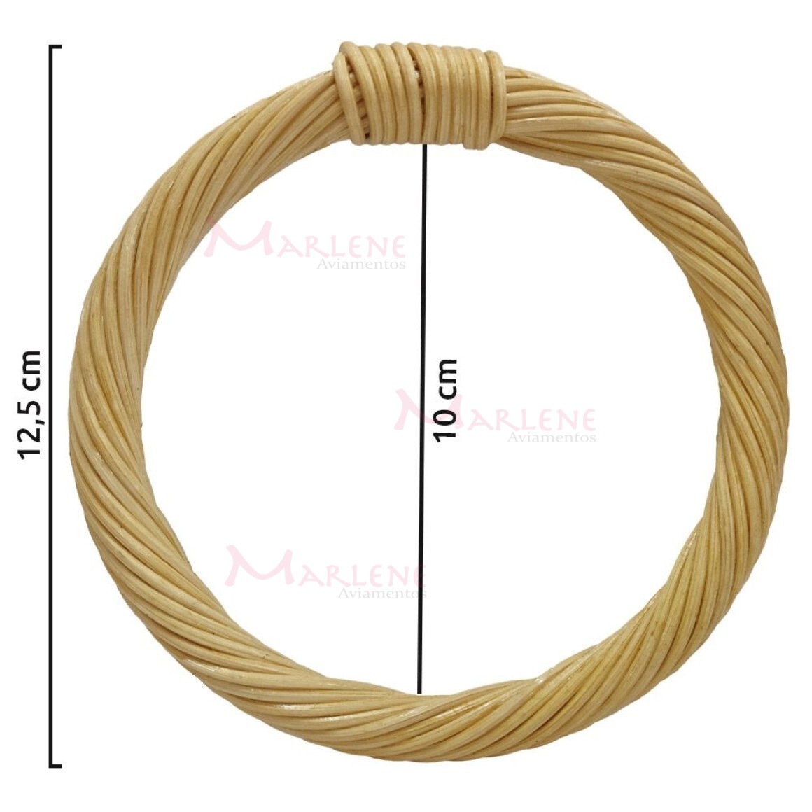 Detalhes: Alça rattan para bolsa redonda 12,5 cm trançada com 1 par