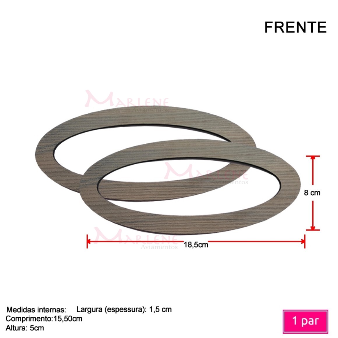 Detalhes: Alça mdf oval "P"(18,5x8cm) forrada em cetim e mdf laminado 1 par