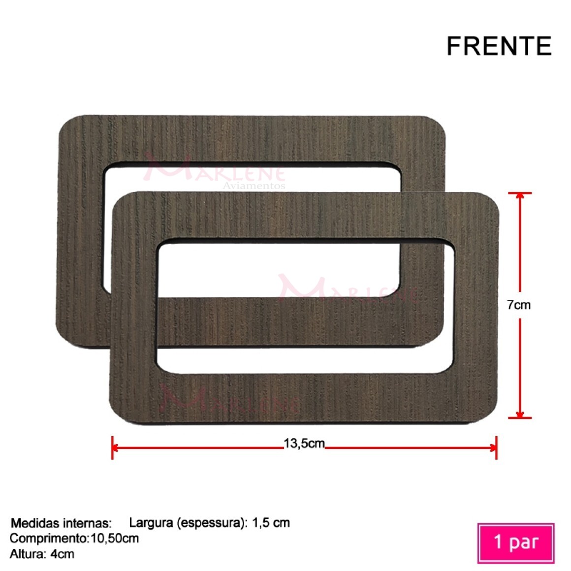 Detalhes: Alça mdf retangular "P"(13,5x7cm) forrada em cetim e mdf laminado 1 par