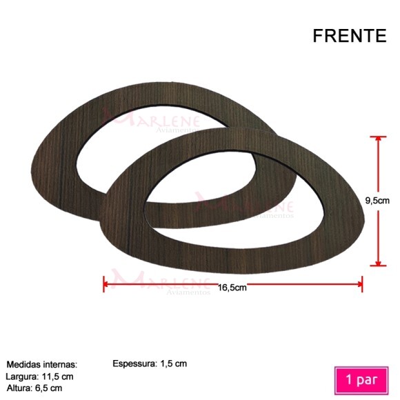 2. Alça mdf meia argola oval "P"(16,5X9,5cm) forrada em cetim e mdf laminado 1 par