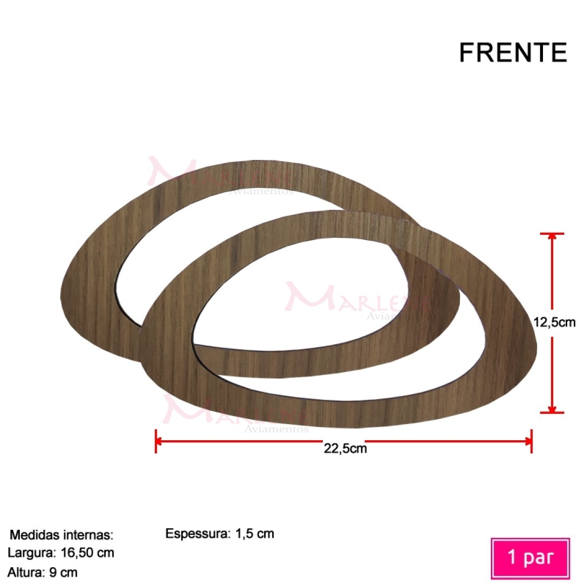 Detalhes: Alça mdf meia argola oval "M"(22,5x12,5cm) forrada em cetim e mdf laminado 1 par