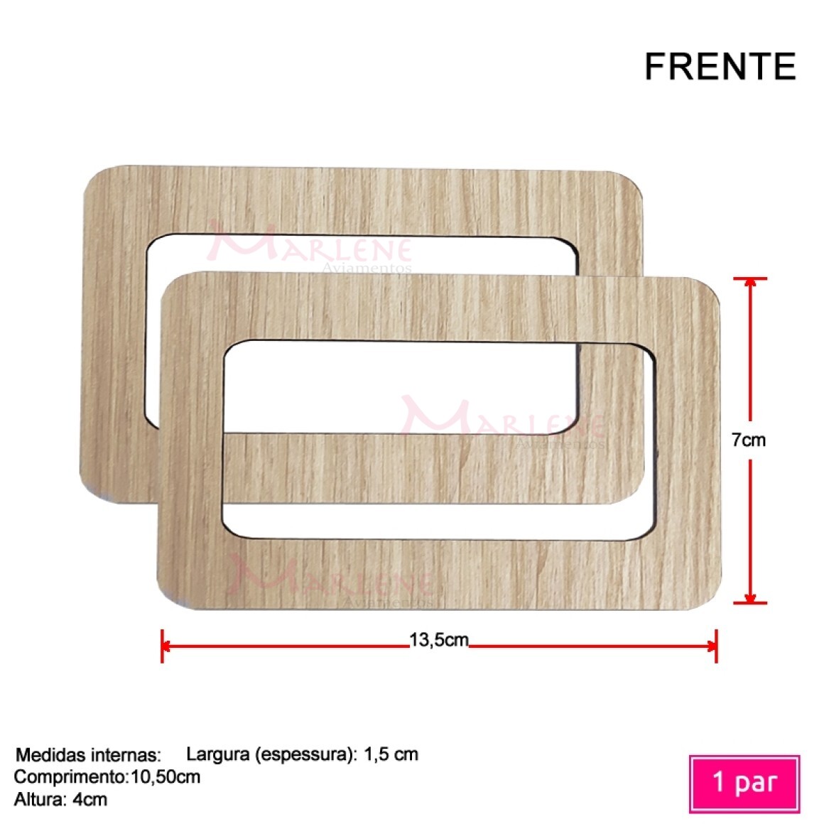 Detalhes: Alça mdf retangular "P"(13,5x7cm) forrada em cetim e mdf laminado 1 par