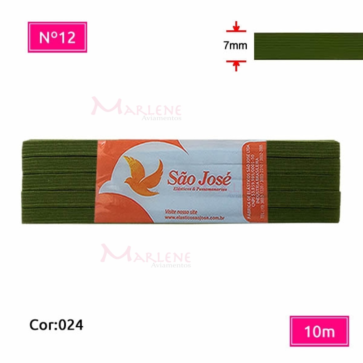Detalhes: Elástico São José nº12 7mm com 10m colorido