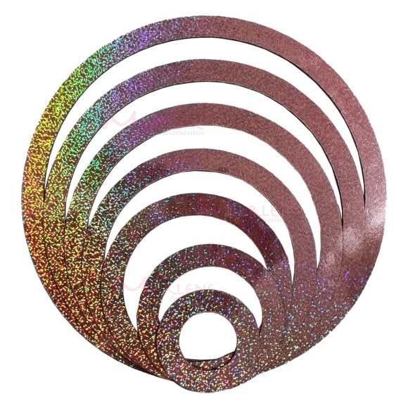 Uso: Arcos em mdf utilizados para confecção de guirlandas, enfeites de ambientes, enfeites de natal, entre outras possibilidades. O papel holográfico no arco, garante um efeito brilhante e encantador, dependendo da luz que irradia no mesmo.