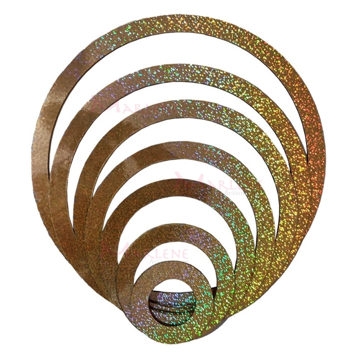Uso: Arcos em mdf utilizados para confecção de guirlandas, enfeites de ambientes, enfeites de natal, entre outras possibilidades. O papel holográfico no arco, garante um efeito brilhante e encantador, dependendo da luz que irradia no mesmo.