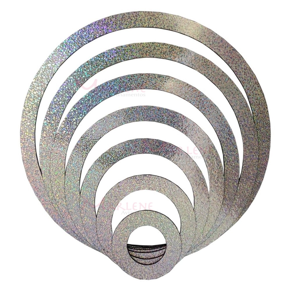 Uso: Arcos em mdf utilizados para confecção de guirlandas, enfeites de ambientes, enfeites de natal, entre outras possibilidades. O papel holográfico no arco, garante um efeito brilhante e encantador, dependendo da luz que irradia no mesmo.