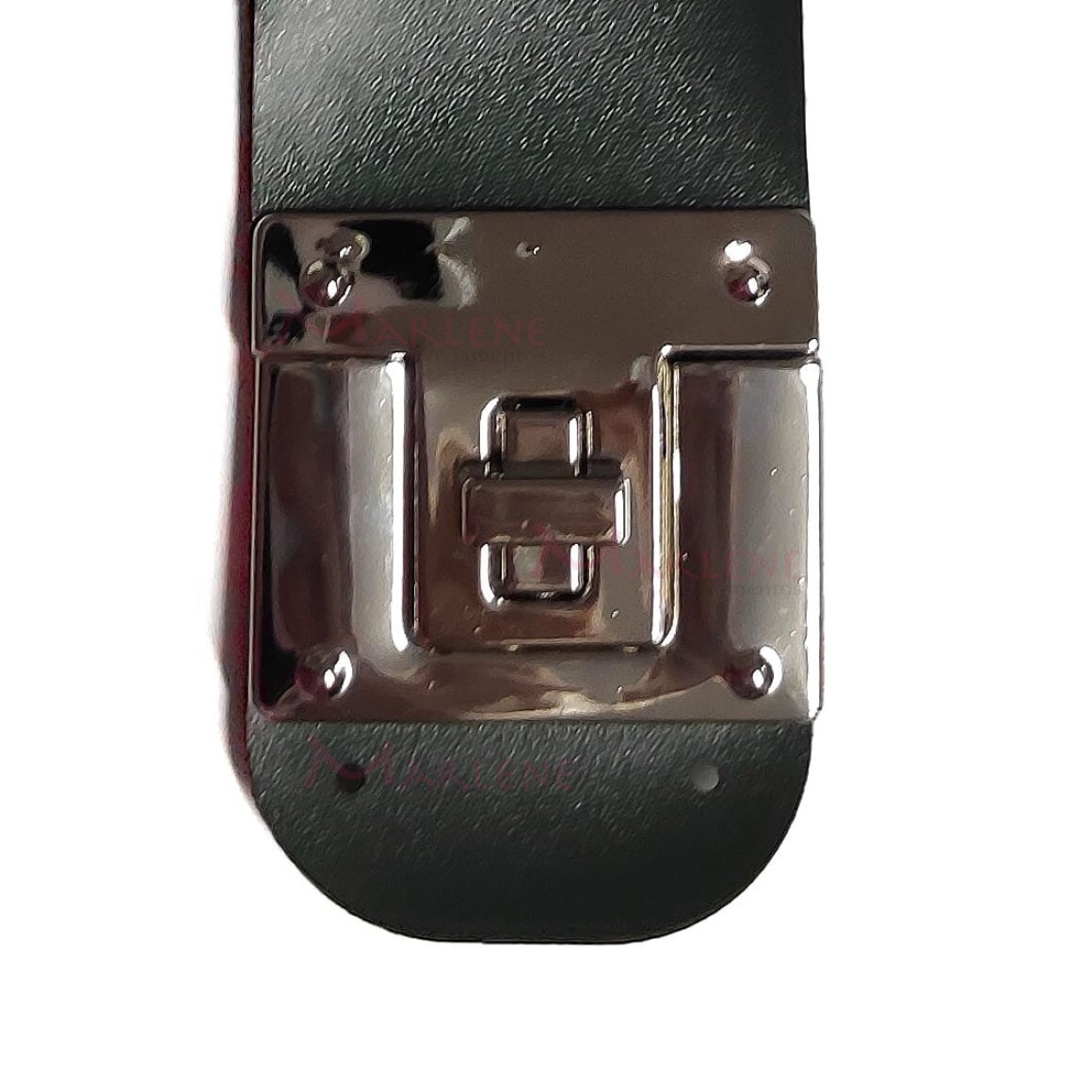 Uso: Fecho em corino usado para bolsas de crochê e tricô, entre outros adereços com fecho. Feito em material sintético e fecho de metal com encaixe giratório. Seu comprimento mais alongado, permite fazer a volta completa pela parte superior da bolsa.