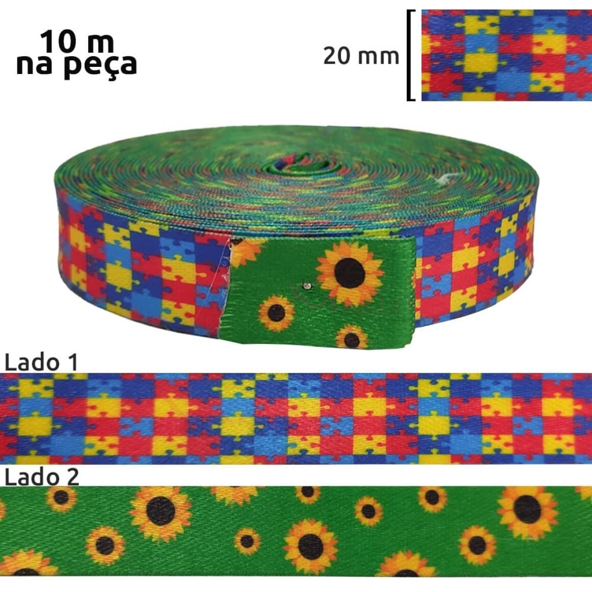 Alça dupla face 20mm estampada símbolo autísmo e defieciênais ocultas com 10m MWGE4000