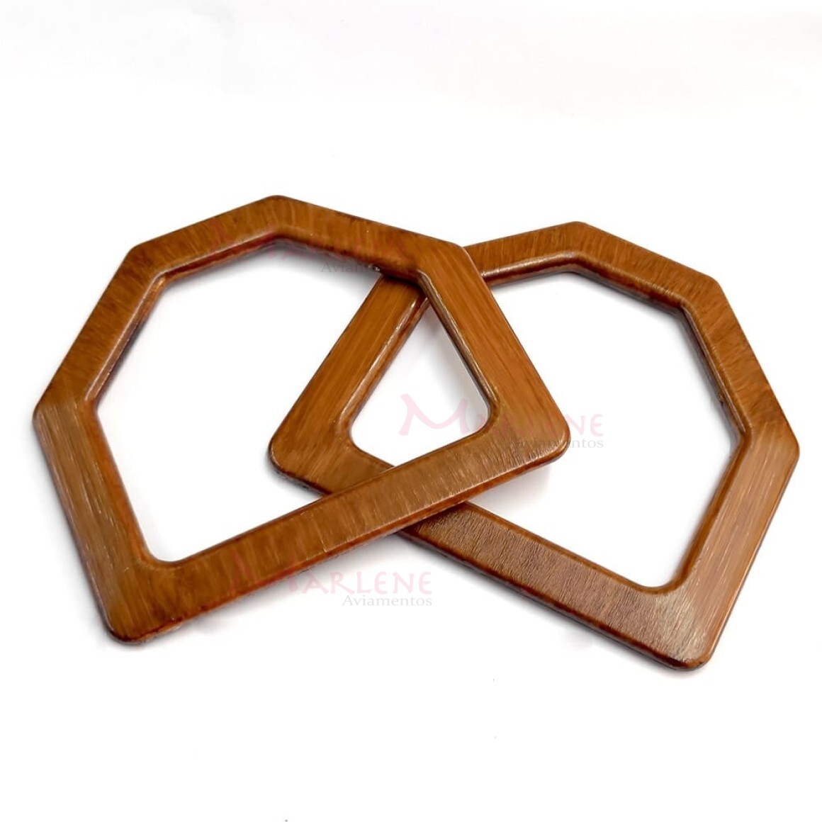 Detalhes: Alça para bolsa meia argola cor madeira envernizada 7652 com 1 par (Plástica)