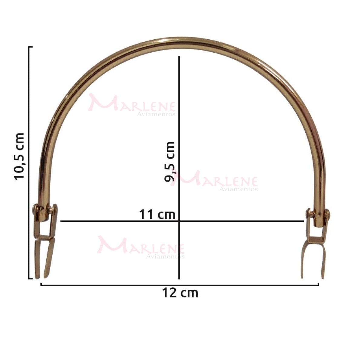 Detalhes: Alça de metal para bolsa meia lua 120mm ouro com chapinha SH026 com 1 par