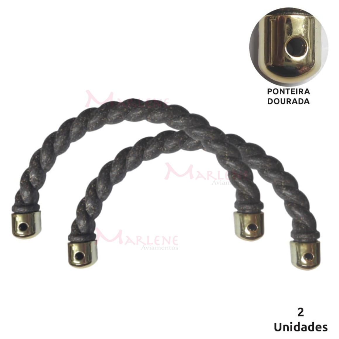 Detalhes: Alça trançada imbuia mesclado com ponteira dourada 7450 com 1 par