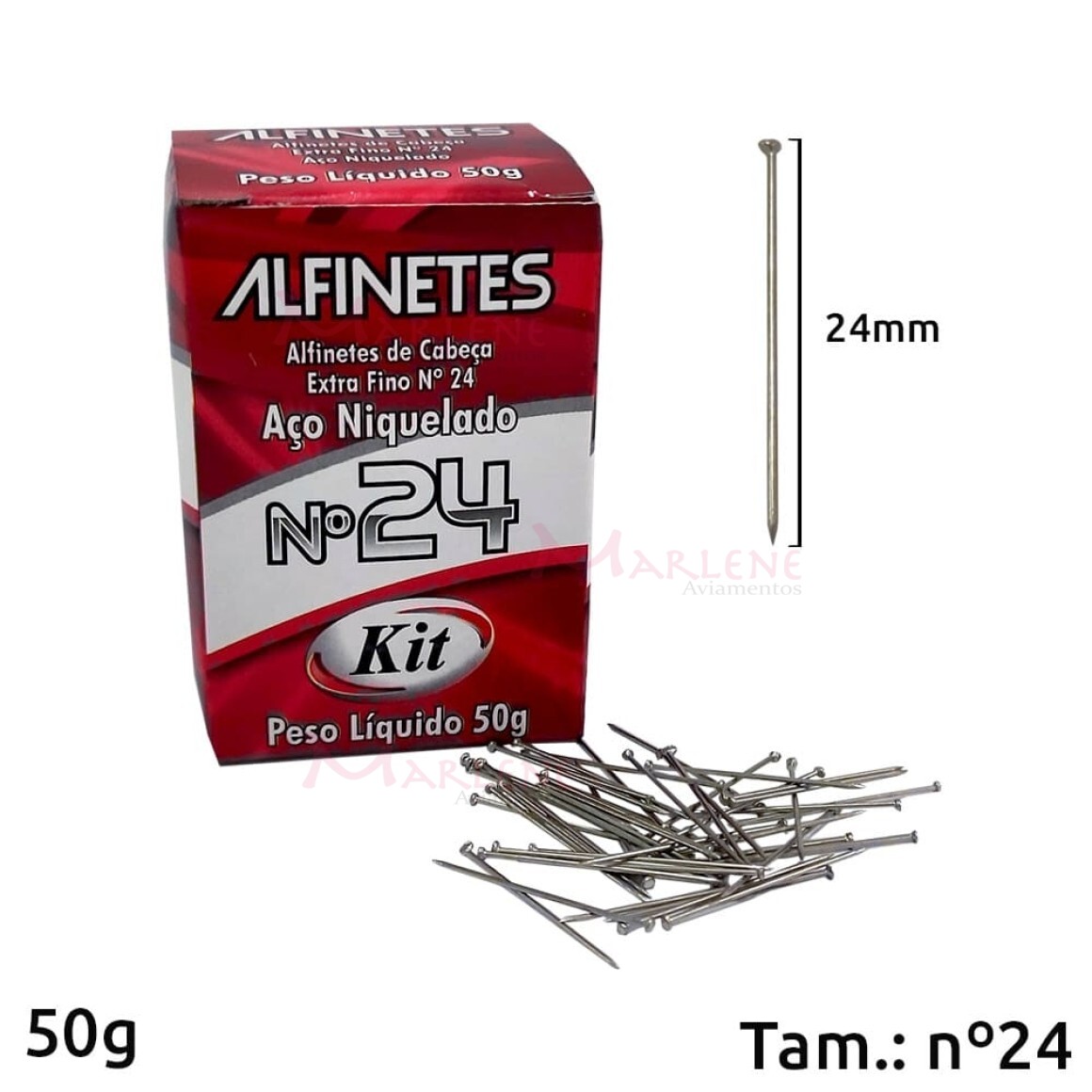 Detalhes: Alfinete de cabeça nº24 níquel com 50g marca Kit 8249C