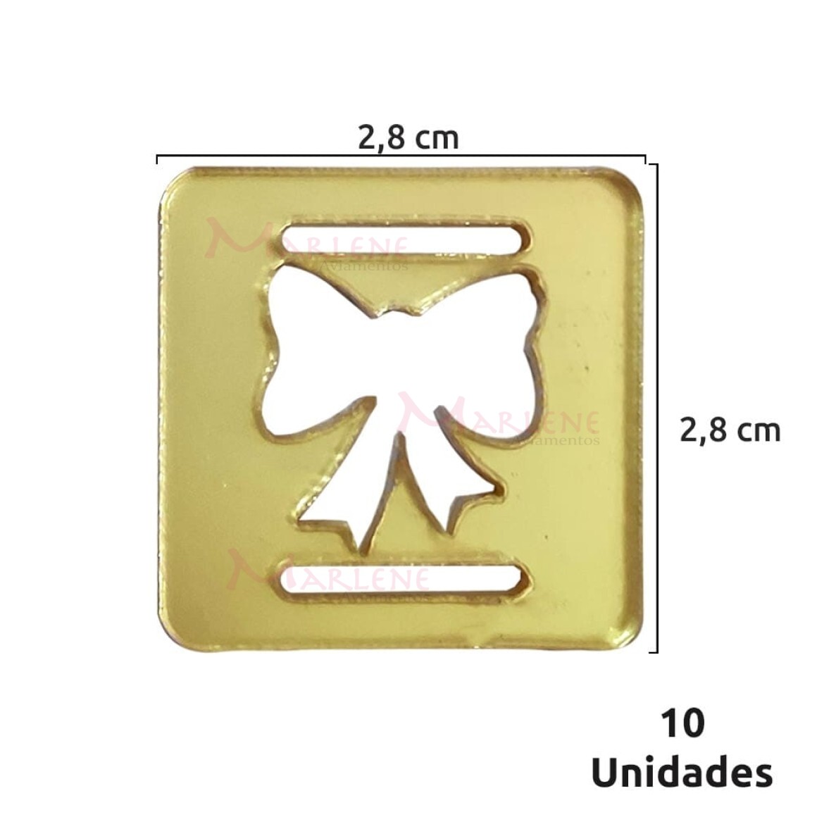 Aplique acrílico espelhado laço vazado quadrada com 10 unidades 5364