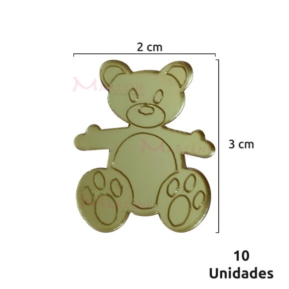 Detalhes: Aplique acrílico espelhado urso com 10 unidades 2831