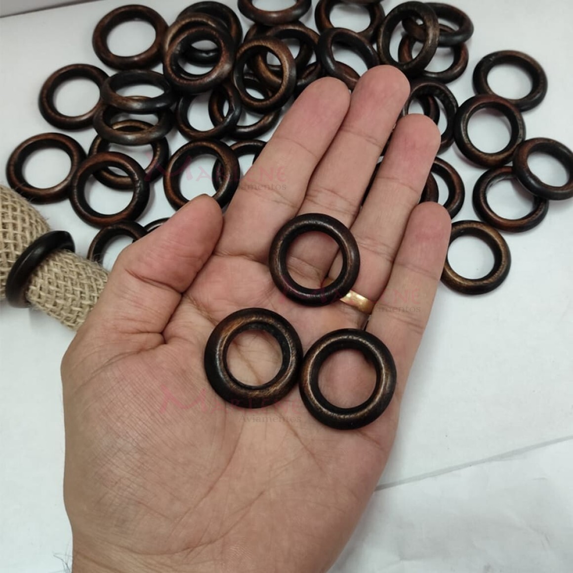 Detalhes: Argola de madeira 20 mm (Tam.0) imbuia com 2 unidades