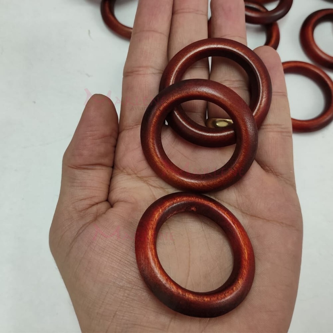 Uso: A argola de madeira pode ser usada em trabalhos de artesanato, chaveiros, em porta guardanapos, detalhes de alças de bolsa, chocalhos, trabalhos de macramê, decoração de cortinas, entre outros.