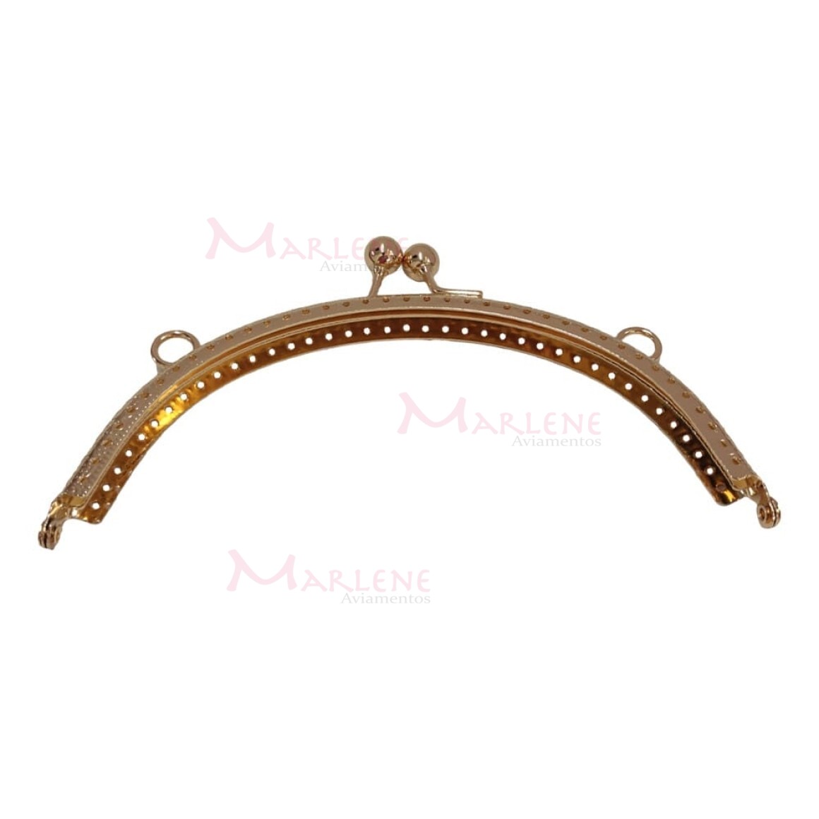 Detalhes: Armação fecho da vovó oval 15cm dourado c/furo e argola RO.151256