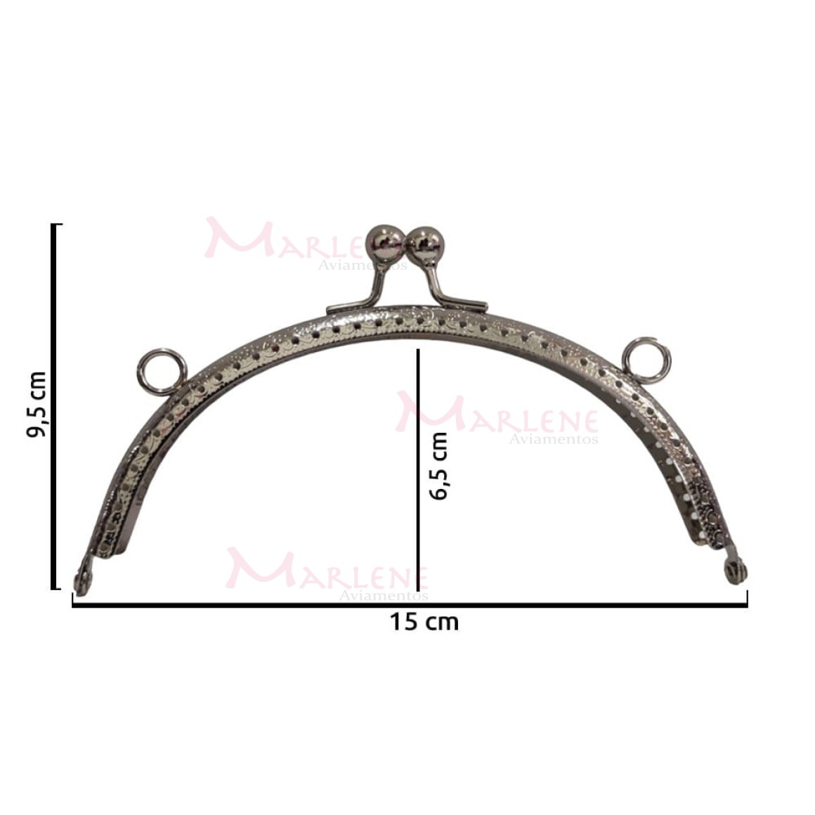 Detalhes: Armação fecho da vovó oval 15cm níquel c/furo e argola RO.151256