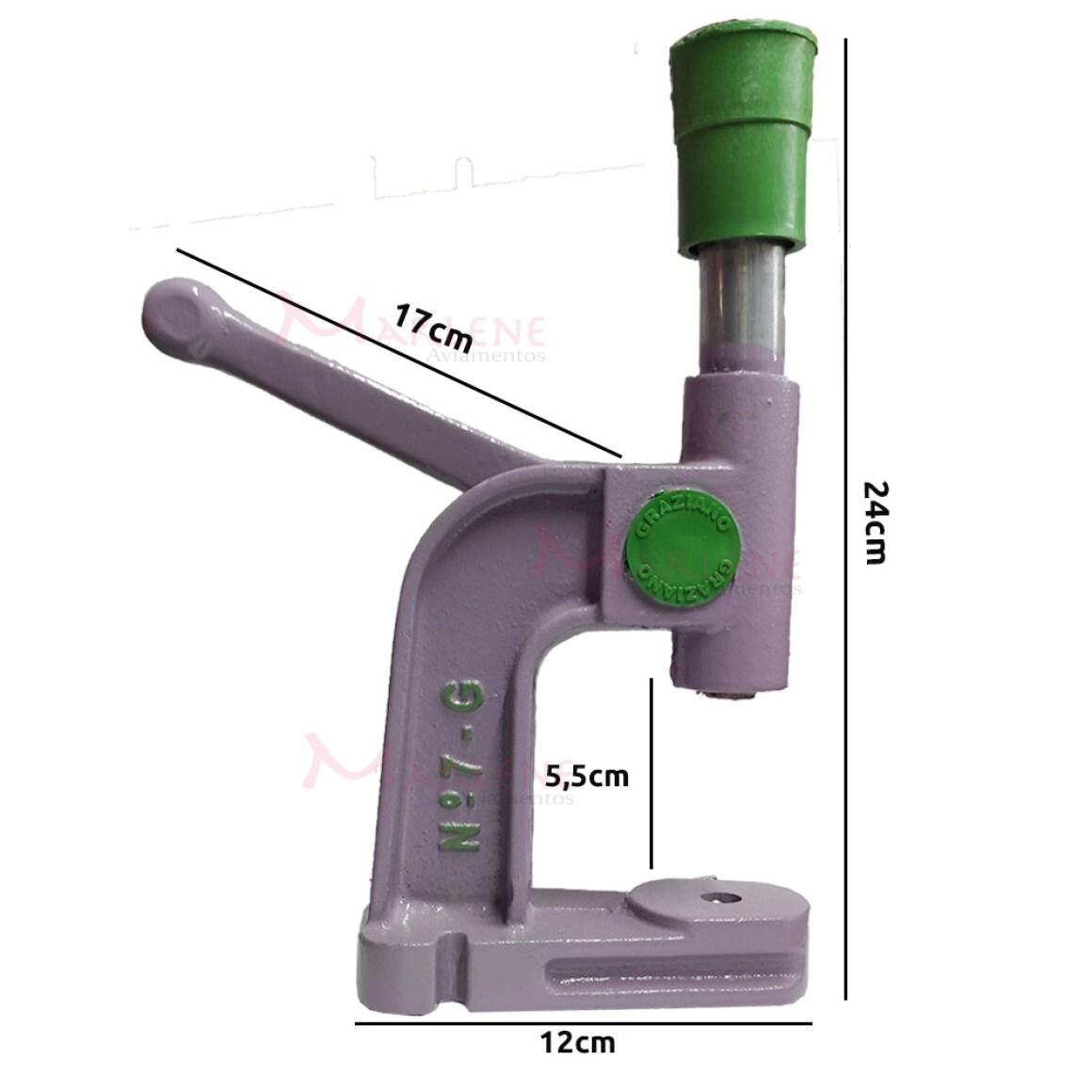 Uso: O balancim é utilizado para a colocação de botões de pressão plástico ou de metal, botão jeans, ilhóses, rebites, forrar botões, entre outros materiais. O balancim nº7 é equivalente ao balancim 100, ou seja, significa que a pressão que o mesmo consegue exercer é equivalente a 100kg. Para cada tipo de material que for utilizado, geralmente se usa uma matriz específica, consulte-nos, caso tenha dúvidas.