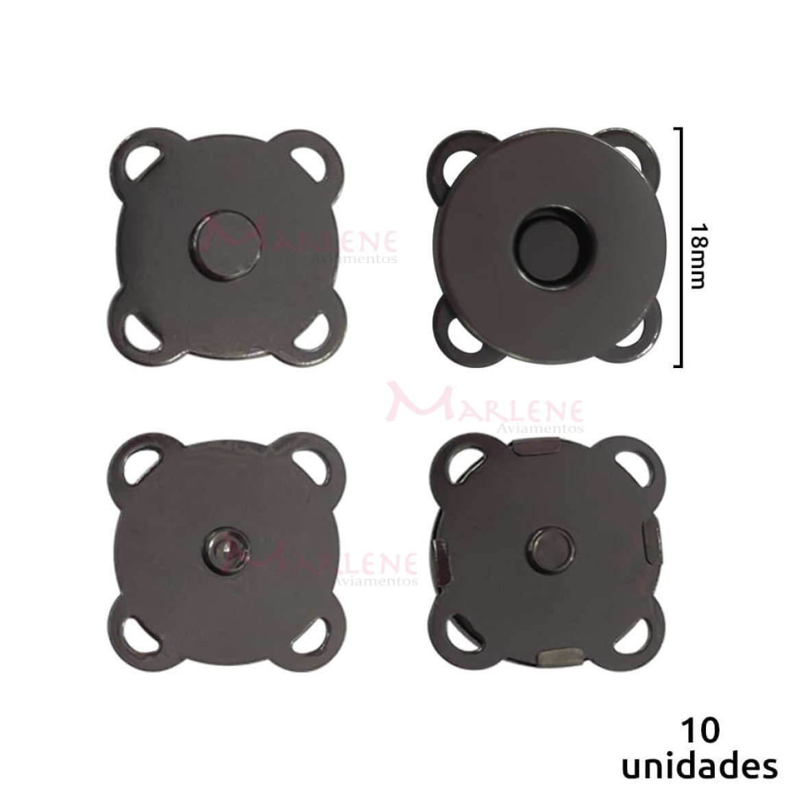 Detalhes: Botão imantado 18mm para costura grafite com 10 unidades