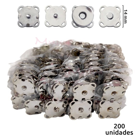 Detalhes: Botão imantado para costura 14mm níquel com 200 unidades
