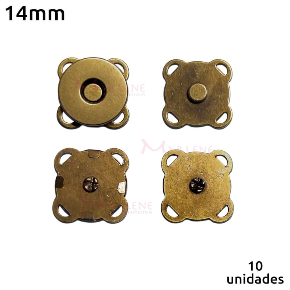 Detalhes: Botão imantado para costura 14mm ouro velho com 10 unidades