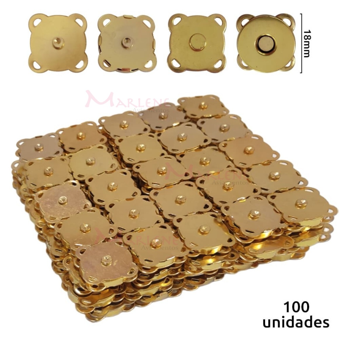 Detalhes: Botão imantado para costura 18mm latonado com 100 unidades