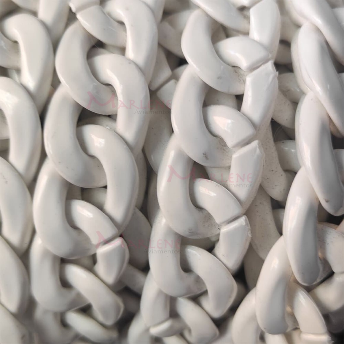 Detalhes: Corrente plástica elo 23X17mm branca 9650 com aproximidamente 80 elos no metro