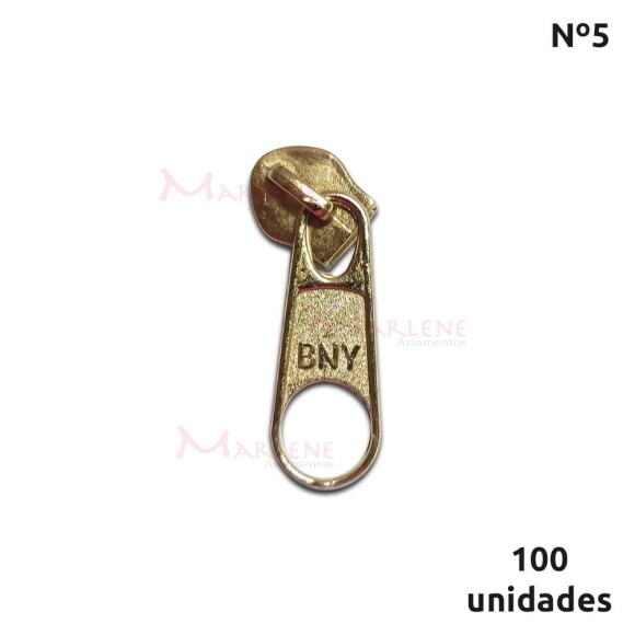 Detalhes: Cursor de ziper nº5 comum com 100 unidades latonado metal