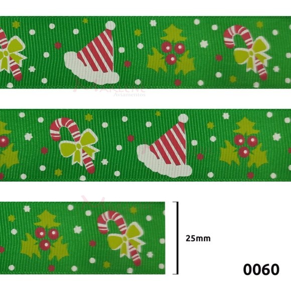 Detalhes: Fita de gorgurão 25mm gorro verde 0060 por metro