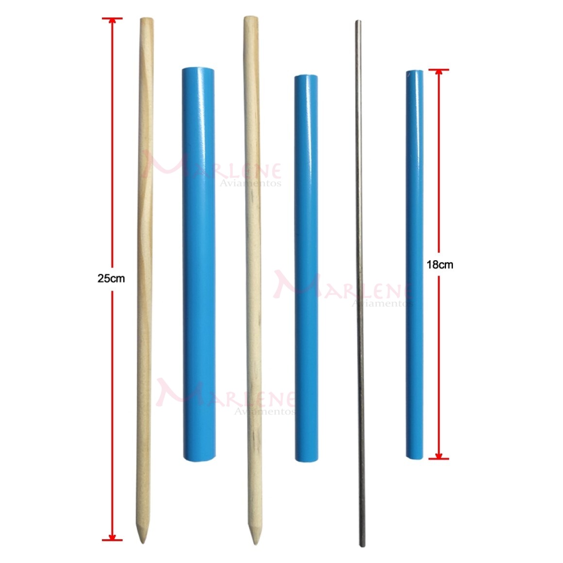 Quantidade: 3 tubos 3 varetas (2 varetas de madeira e 1 de metal)