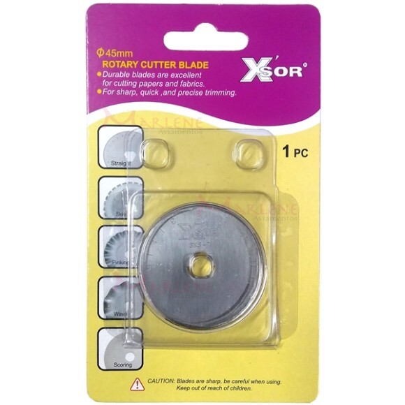 Uso: Usado para cortes precisos em tecidos, papéis e mantas. Serve para reposição de lâminas gastas de cortadores 45mm.
