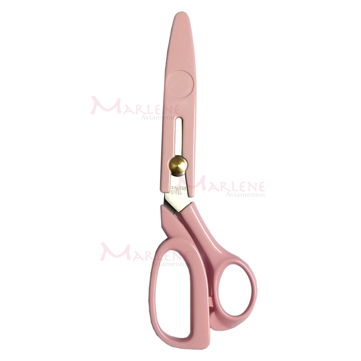 Detalhes: Tesoura com protetor rosa 8'' Lanmax.