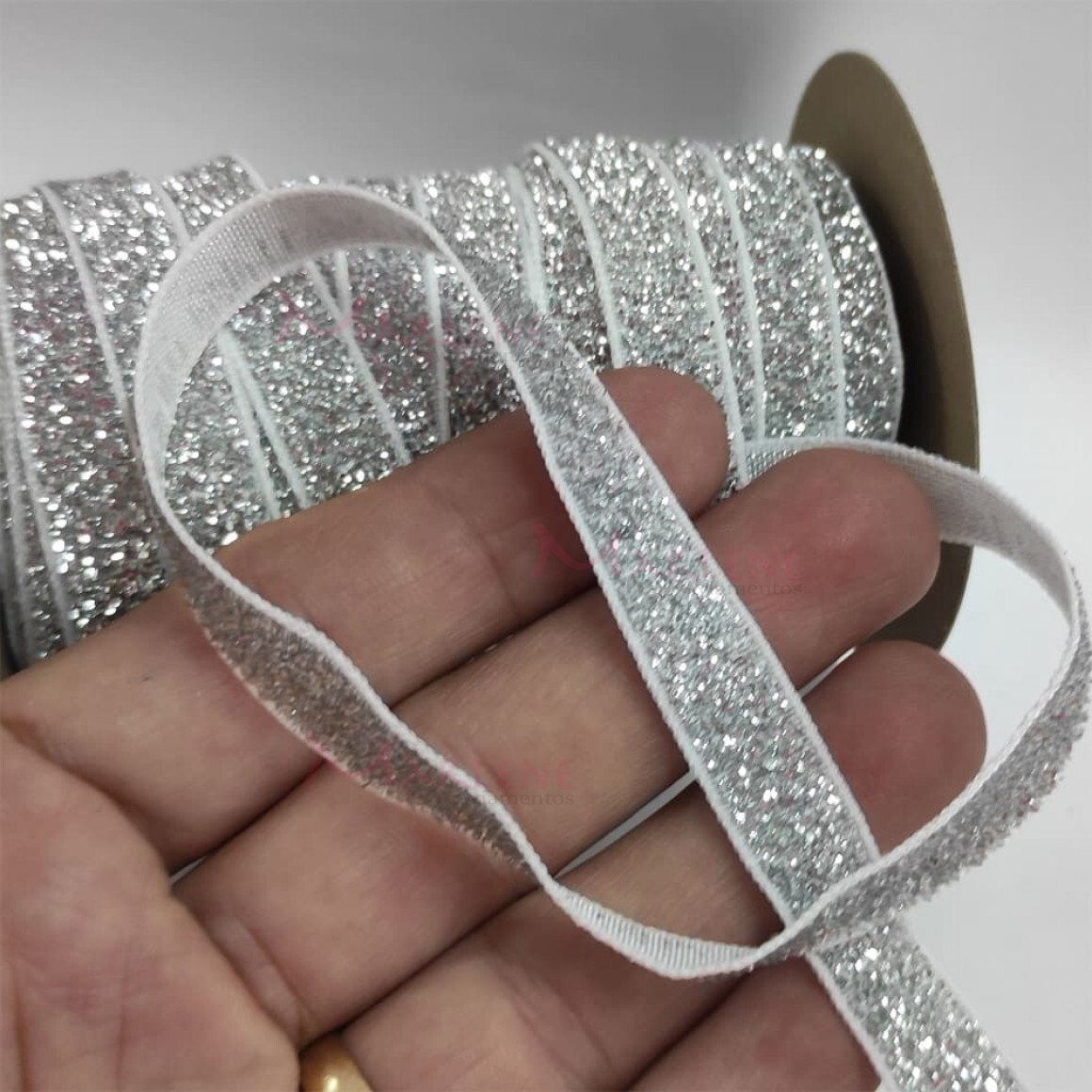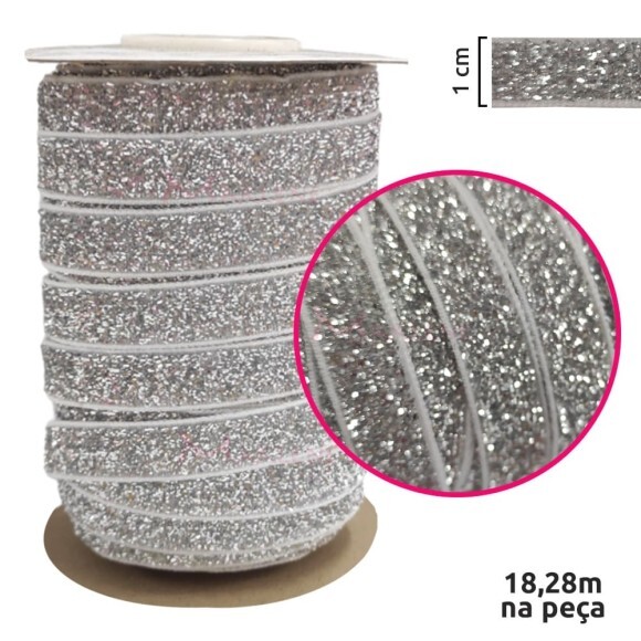 Fita metalizada lurex de 1cm com 18,28m na peça
