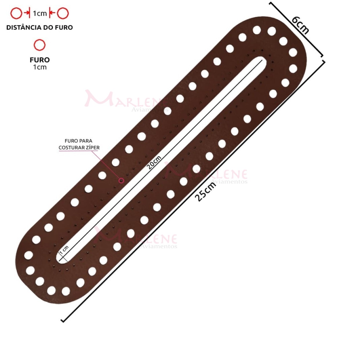 Acessório de corino para zíper em bolsa de crochê com 25x6cm