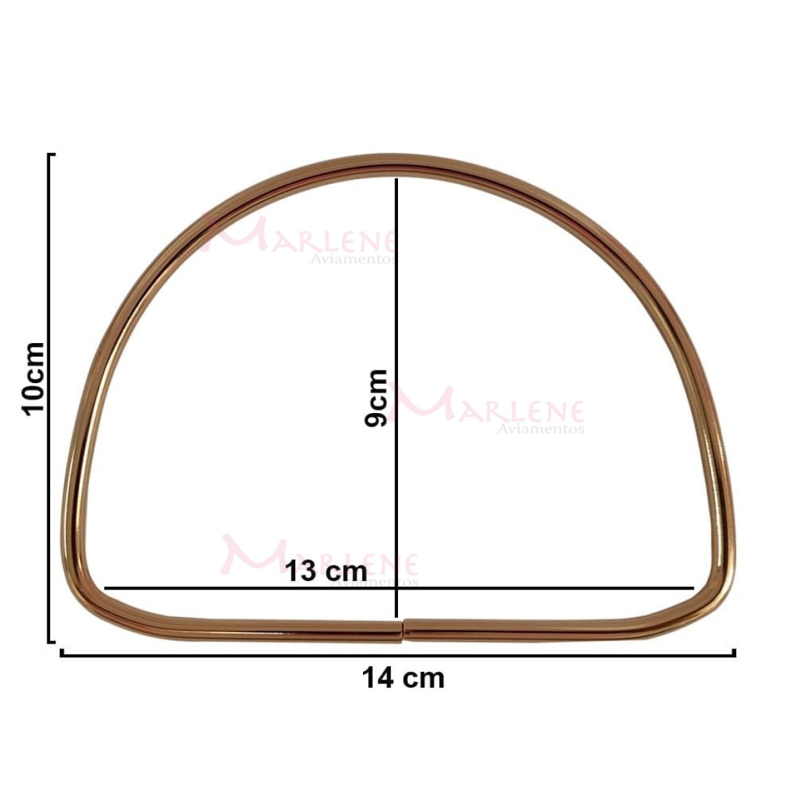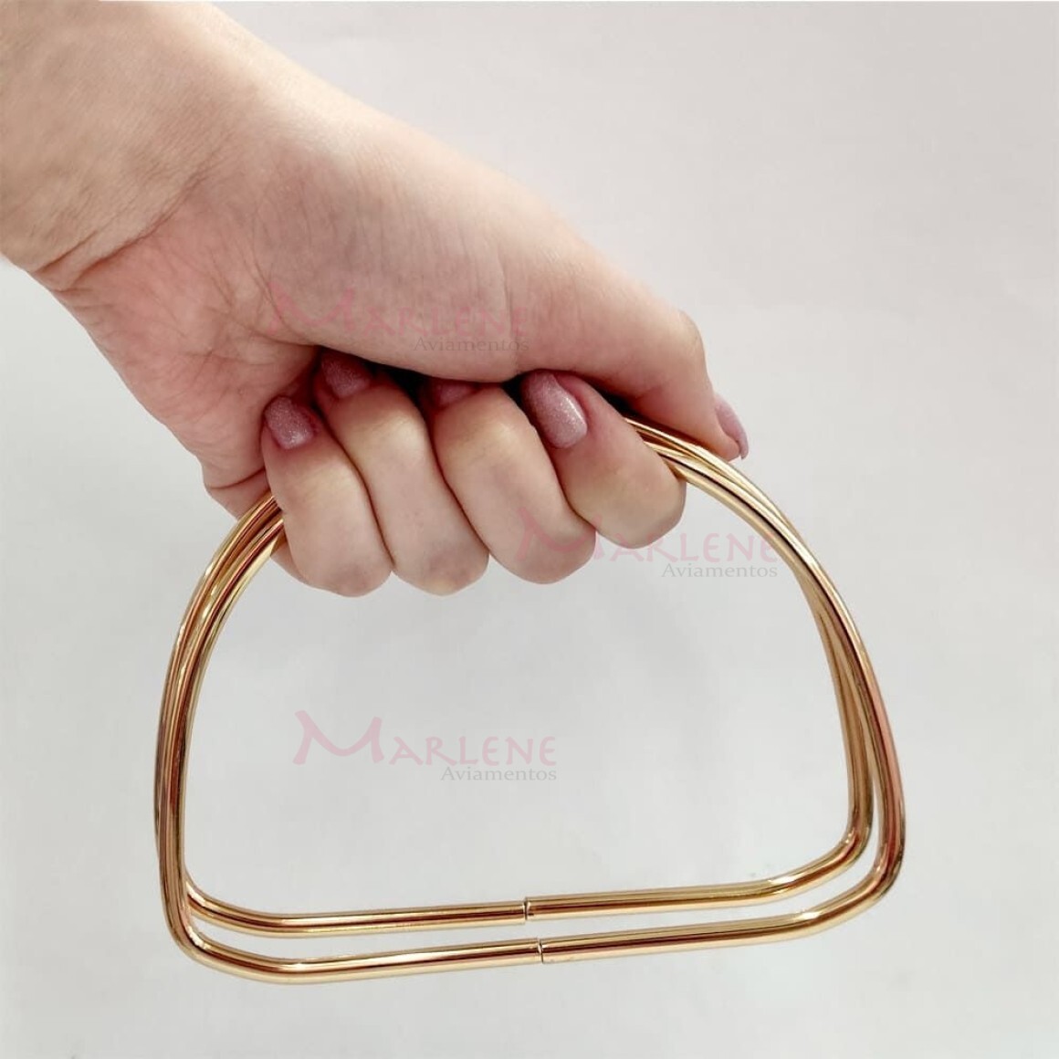 Uso: Alça para bolsa em metal modelo meia argola, utilizada em bolsas de crochê, como alça de mão. Material resistente e elegante para garantir um diferencial para suas bolsa. Alça com abertura para que você encaixe os dois lados na bolsa.