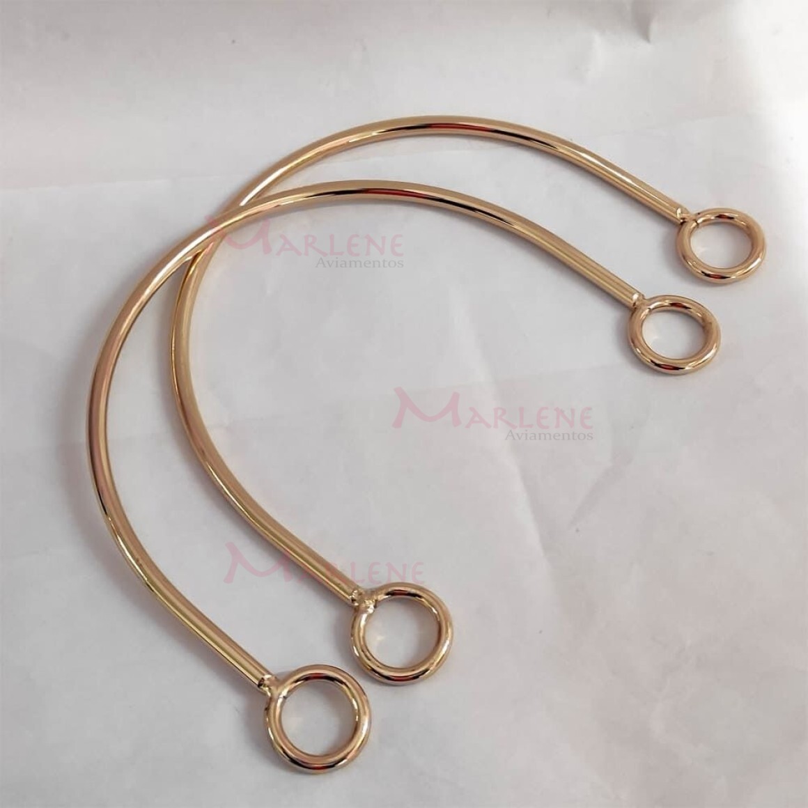 Uso: Alça para bolsa em metal, utilizada em bolsas de crochê, como alça de mão. Material resistente e elegante para garantir um diferencial para suas bolsas.