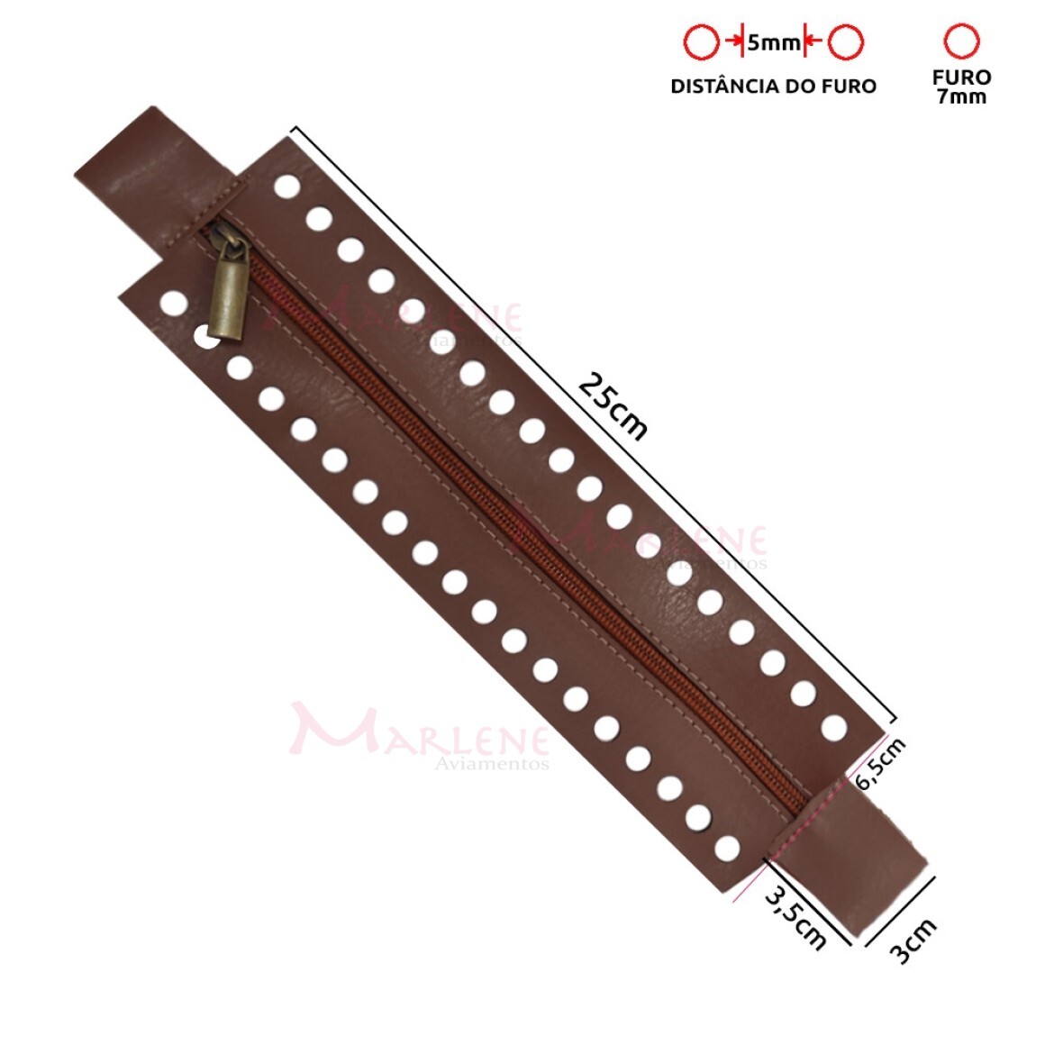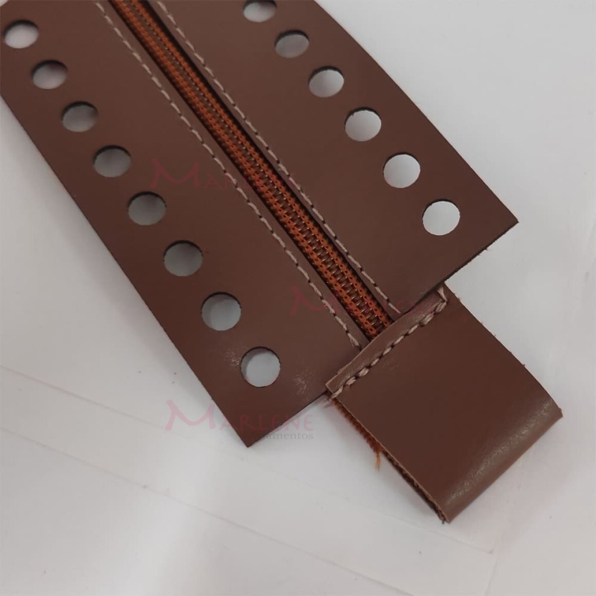 Fecho em couro sintético com zíper (Fecho Teresa) de 25cm para bolsa de crochê