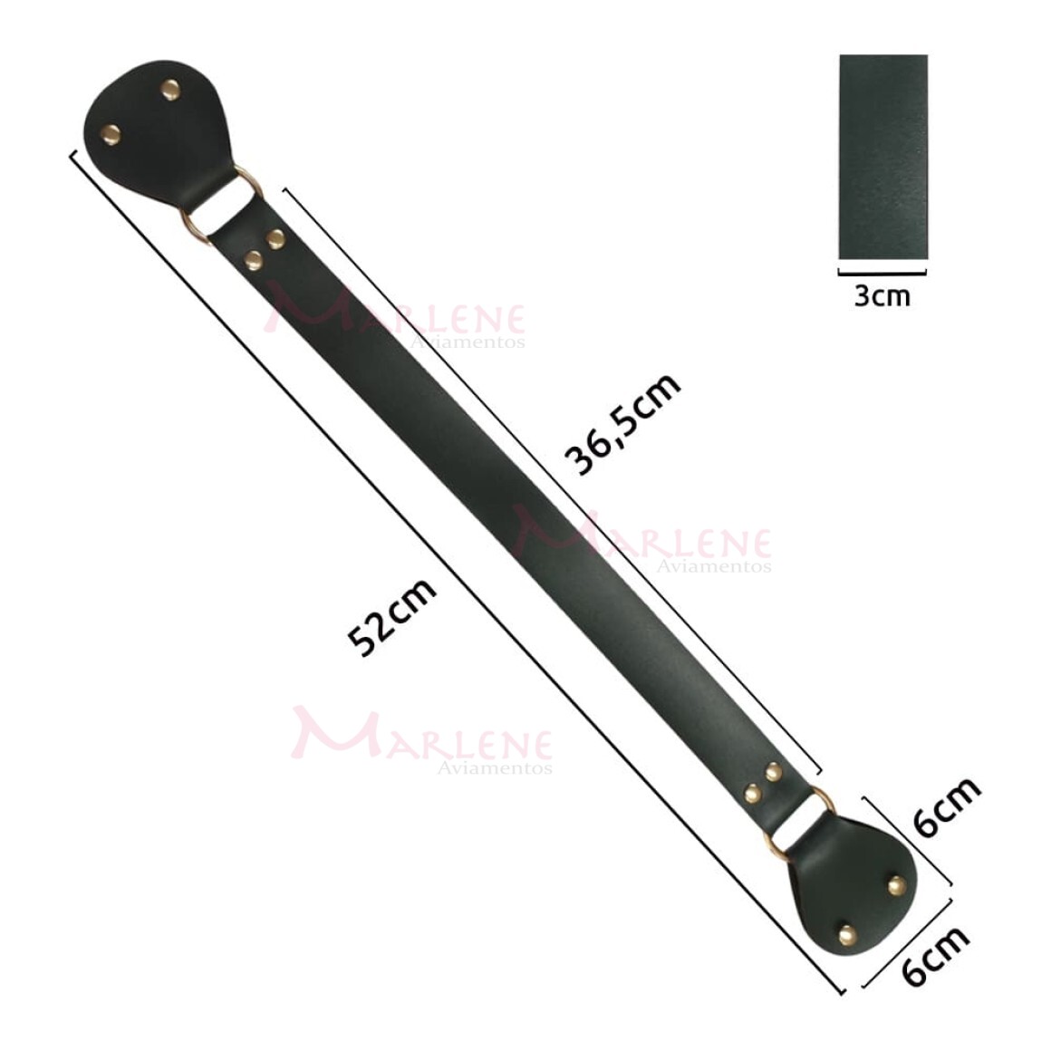 Uso: Alça de bolsa para ombro em couro sintético, fechamento com rebites duplos e argola de ferro. Utilizada para bolsa de crochê, tricô, entre outros. Deixa sua bolsa bonita e elegante.