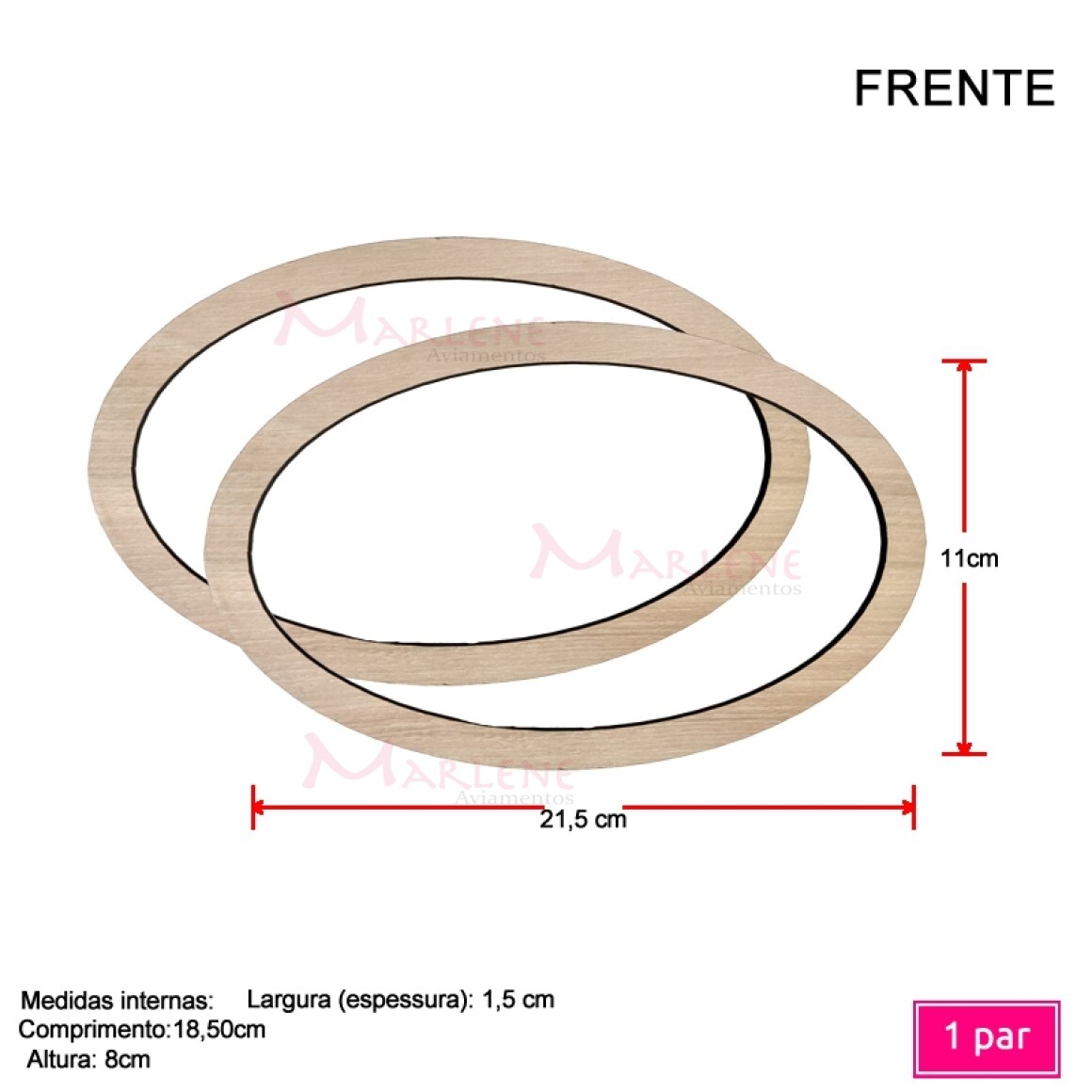 Detalhes: Alça mdf oval "M"(21,5x11cm) forrada em cetim e mdf laminado 1 par