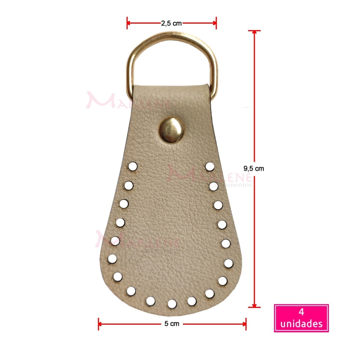 etalhes: Porta alça sintética 4 unidades ouro com meia argola 25mm MF-04