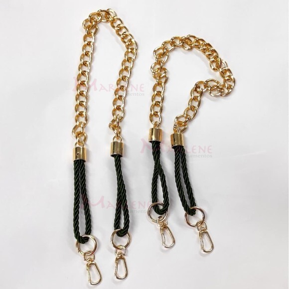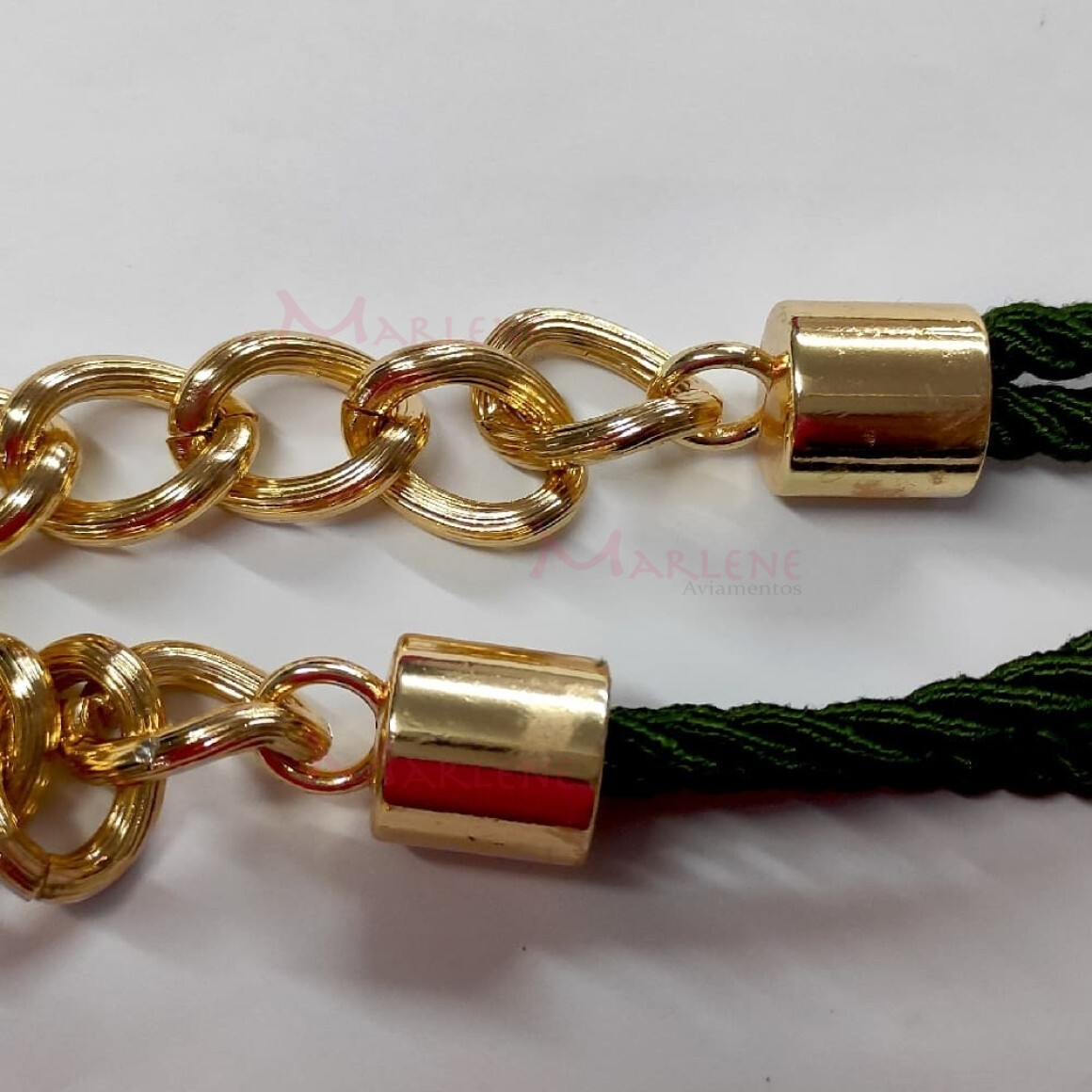 2. Alça com corrente ouro cordão São Francisco ponteira e mosquetão par