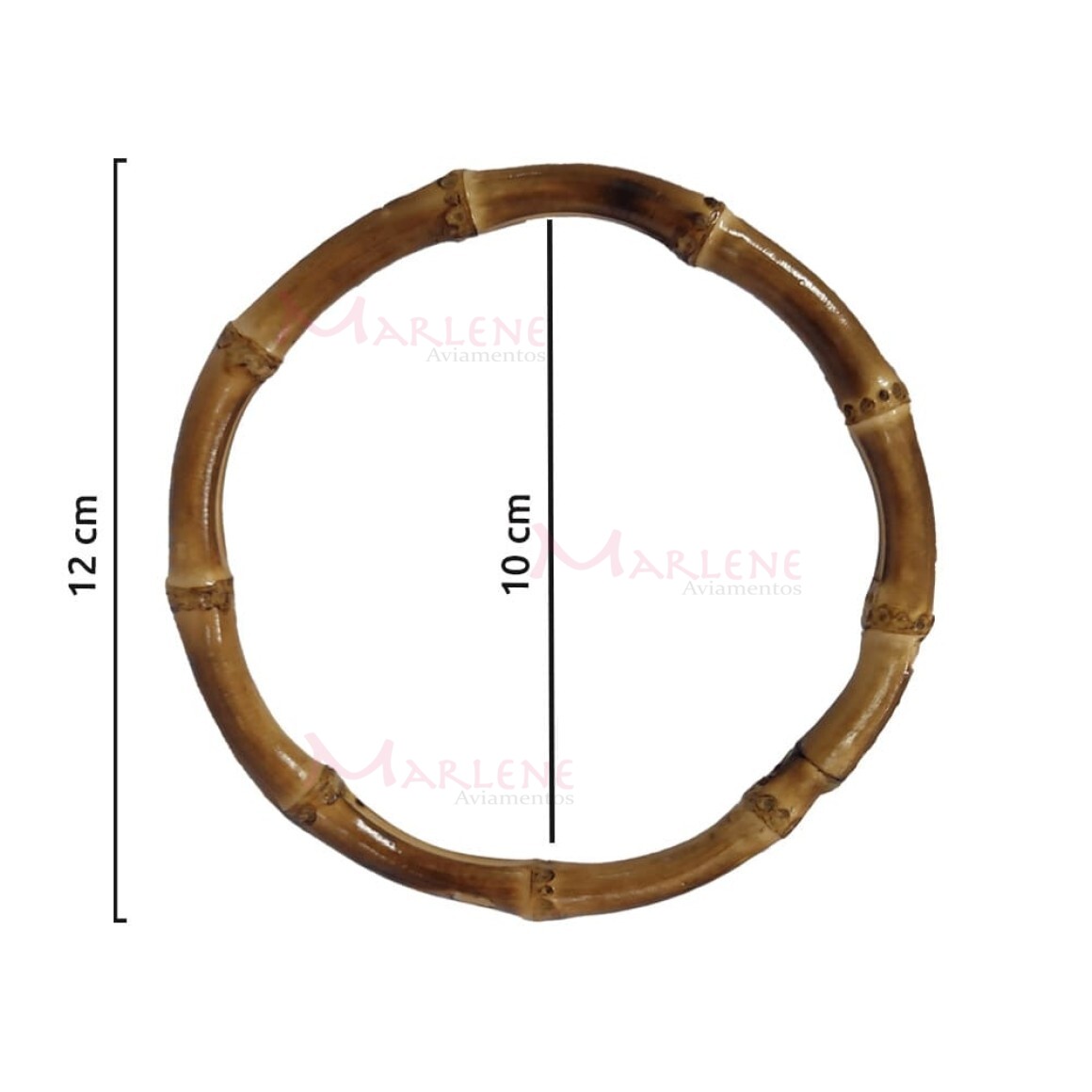 Detalhes: Alça bambu redonda para bolsa 12cm ZQ12 com 1 par