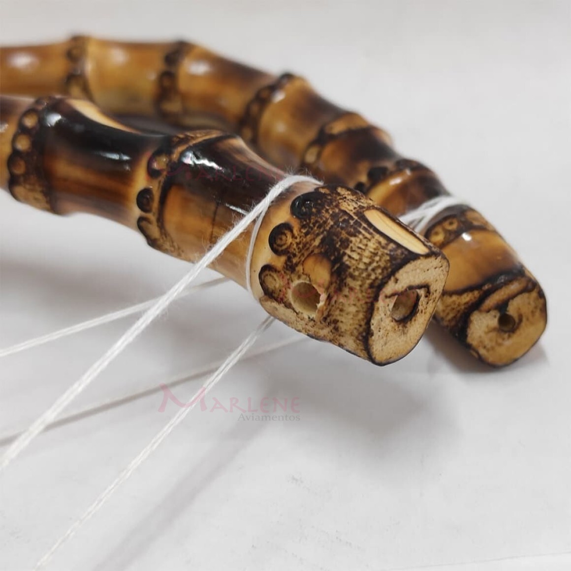 Uso: Alça em bambu, utilizada em bolsas de crochê, bolsas de tricô, bolsas de tecido, bolsas de palha, bolsas moda praia, entre outros.