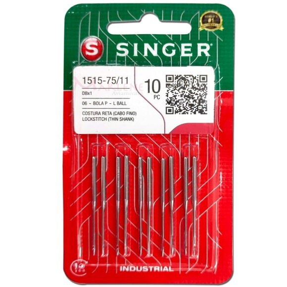 Uso: Agulha cabo fino singer 1515 nº11, usada para costura em para máquina industrial, indicada para tecidos leves e finos.